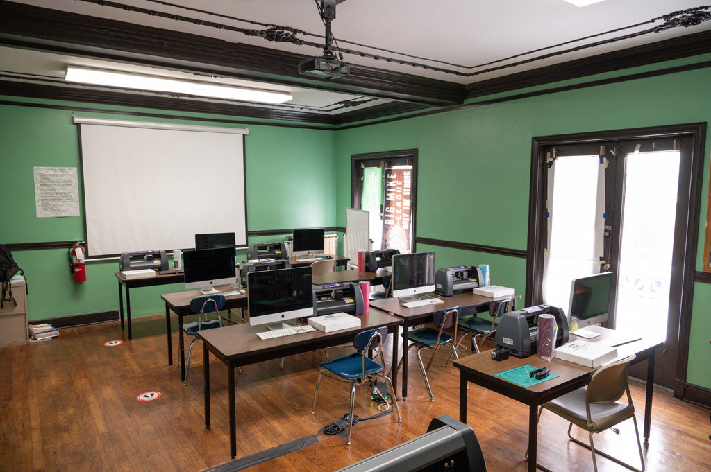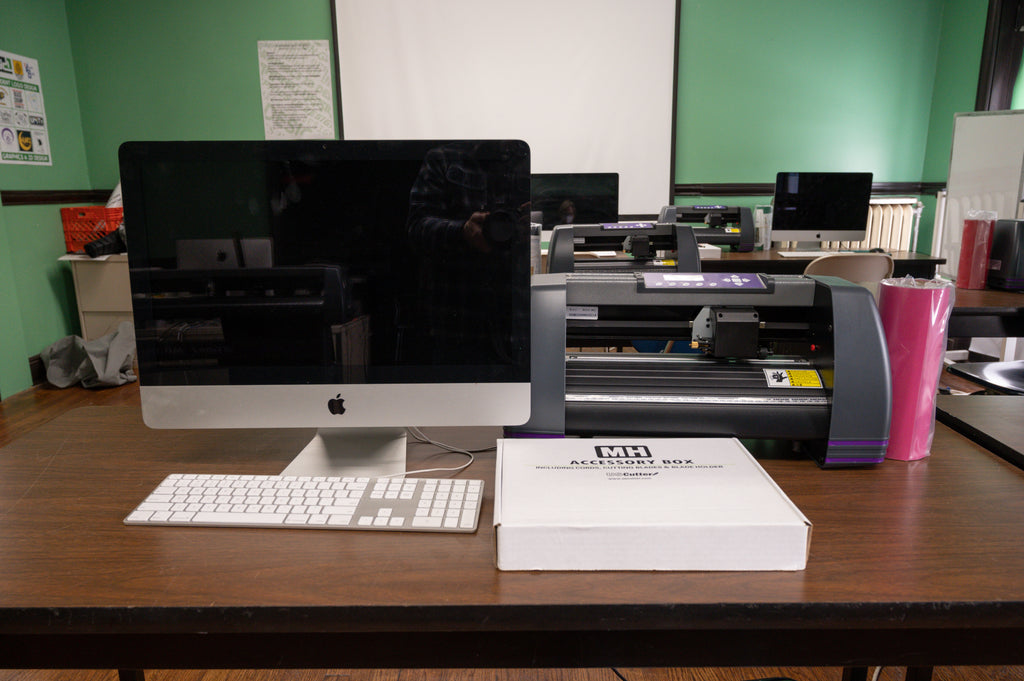 Graphics Lab: Need 20 updated Mac or PCs to run full Creative Suite, 3 heat presses, contour plotter, 10 mini plotters, enough material for 50 kits, proper tables, core based curriculum, large format printers, label printers, digital printers.
